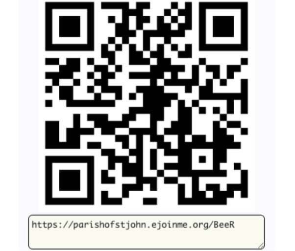 Join us for the annual St. John auction on Sunday April 26th immediately following the 10 am service. The theme this year is Bee the Light. There will be a live auction, paddle raise, silent auction, easel parties, and the Bee the Light Marketplace. A FREE lunch is provided for all who attend. Please register regardless of your desire to participate monetarily. Registration helps in planning for the free lunch. Use the QR code below or this LINK.